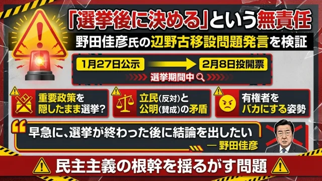有権者を愚弄する中道改革連合の野田佳彦共同代表 辺野古移設を「選挙後に決める」という無責任な逃げを打つ